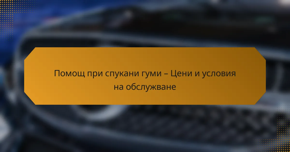 Услугата за помощ при спукани гуми включва предоставяне на техническа помощ на шофьори, които имат проблеми с гумите на своите превозни средства. Тя може да включва смяна на гума, поправка на спукана гума или дори доставка на нова гума на място.