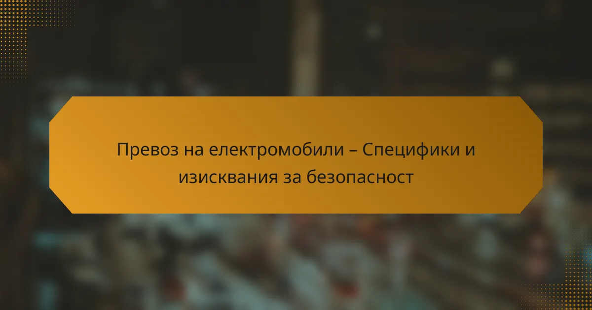 Изискванията за безопасност при превоз на електромобили включват спазване на специфични стандарти и процедури, които осигуряват безопасността на превозното средство и неговата околна среда. Основните аспекти включват правилно закрепване, управление на електрическите системи и предотвратяване на инциденти по време на транспорт.