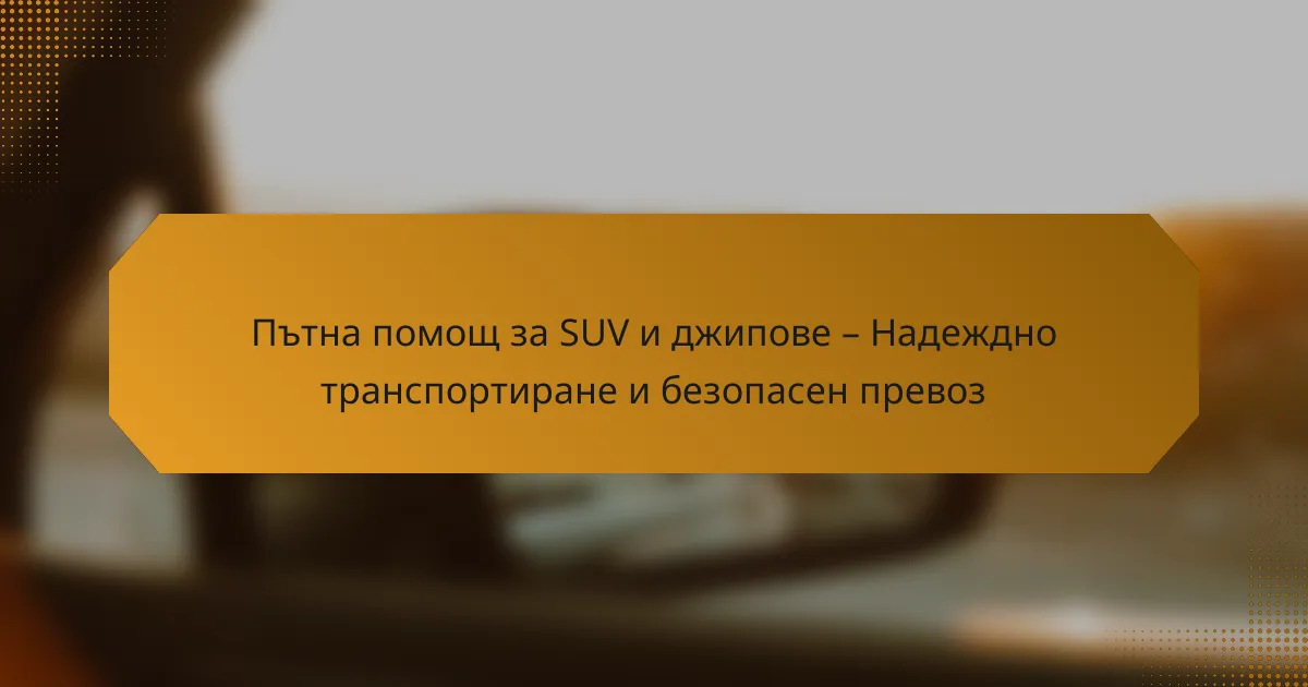 Пътна помощ за SUV и джипове – Надеждно транспортиране и безопасен превоз